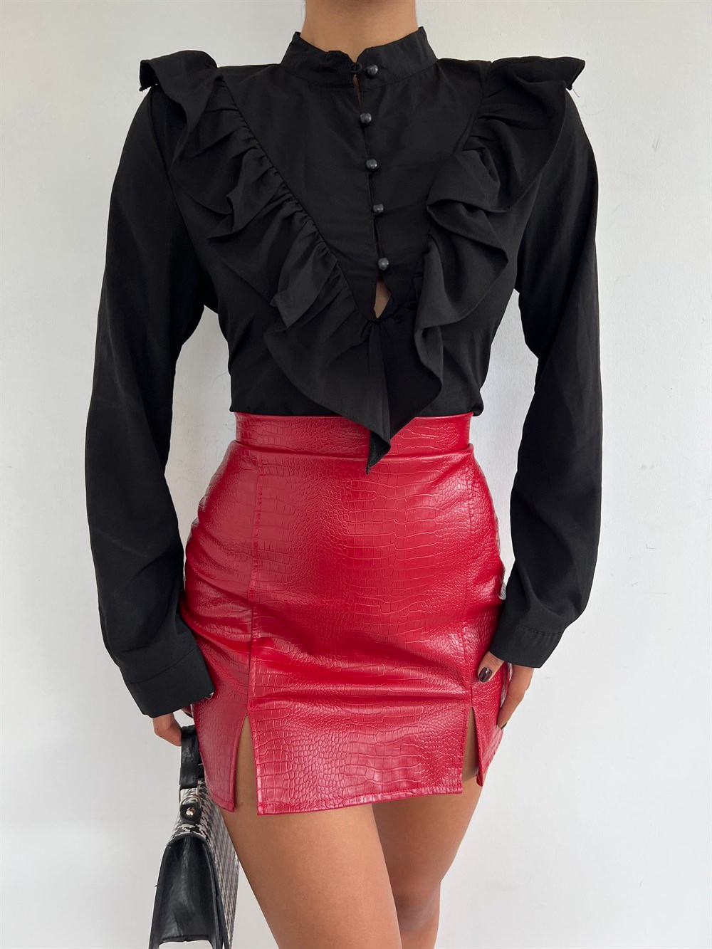 Ön Düğmeli Yaka Fırfırlı Bluz 2033