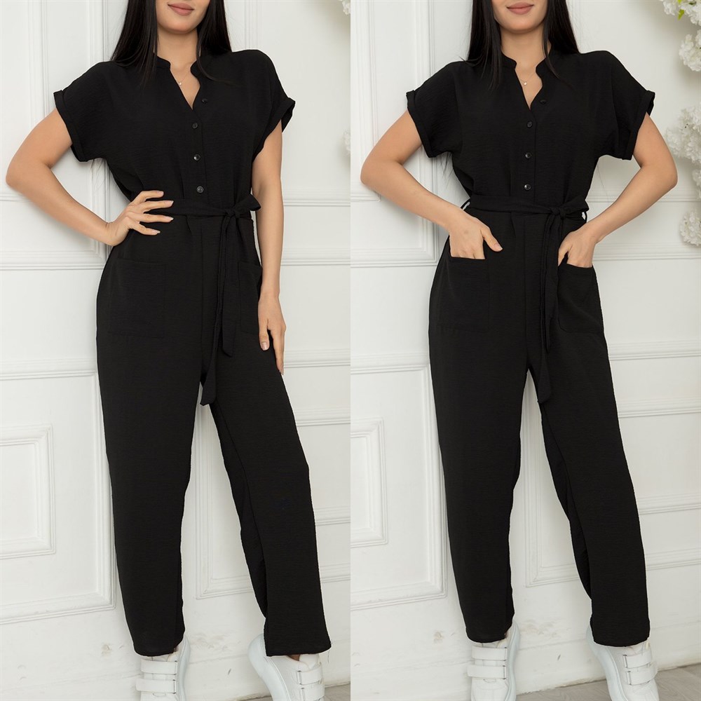 Önden Torbalı Cepli Kuşaklı Tulum 2848 SİYAH