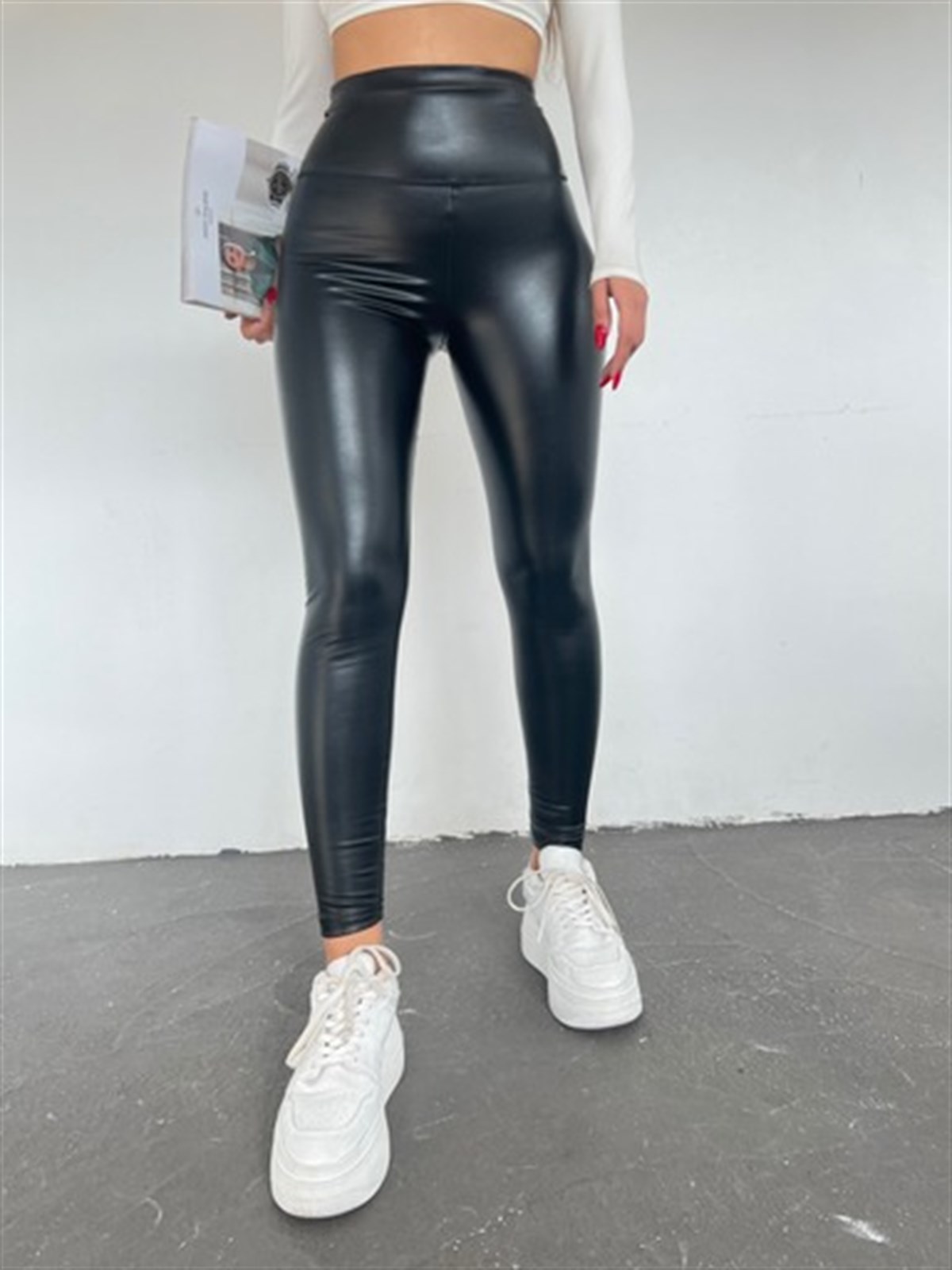 Parlak Geniş Kemer Deri Tayt 1742 SİYAH