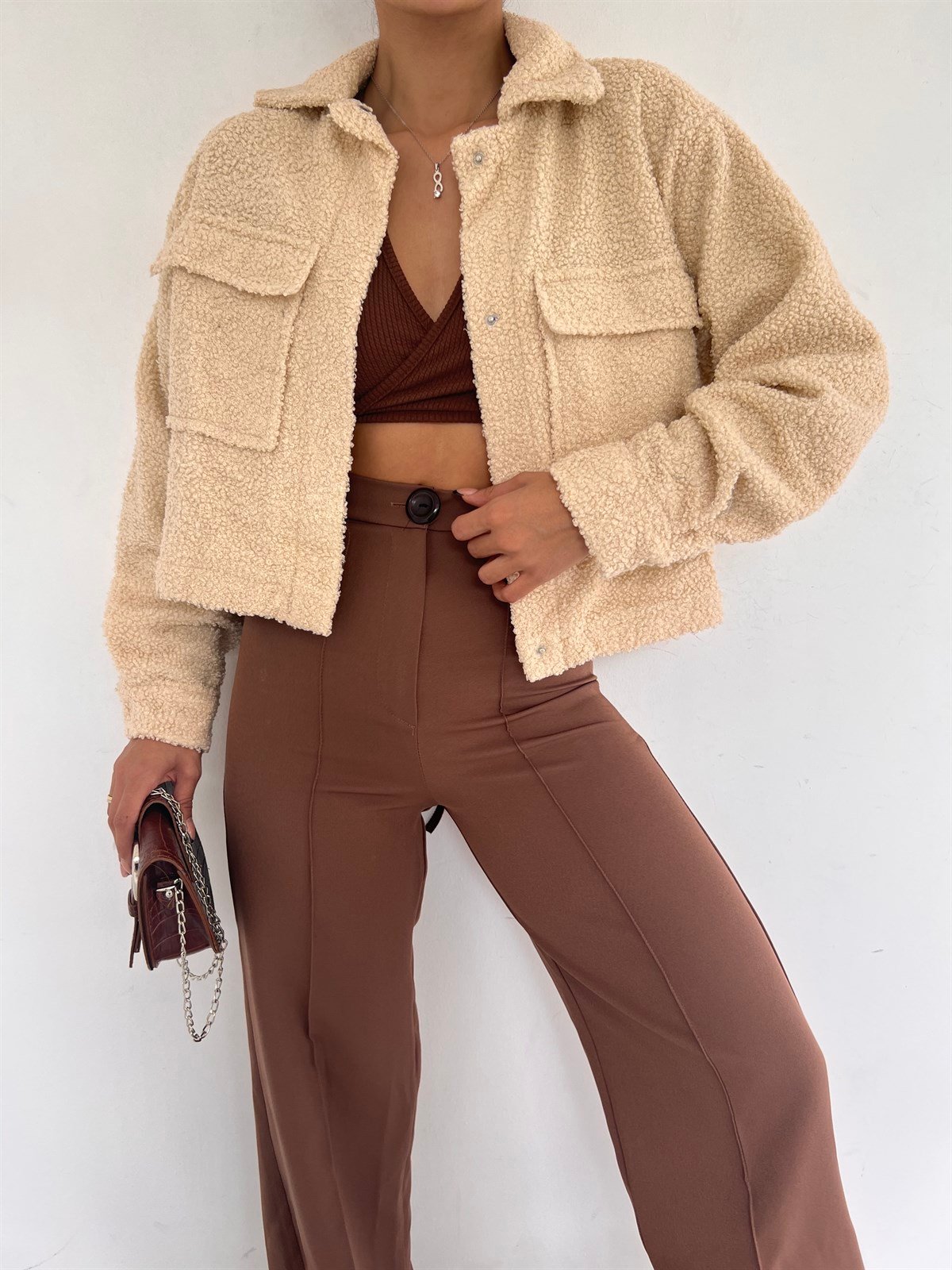 Peluş Cepli Kısa Ceket 9059 TAŞ