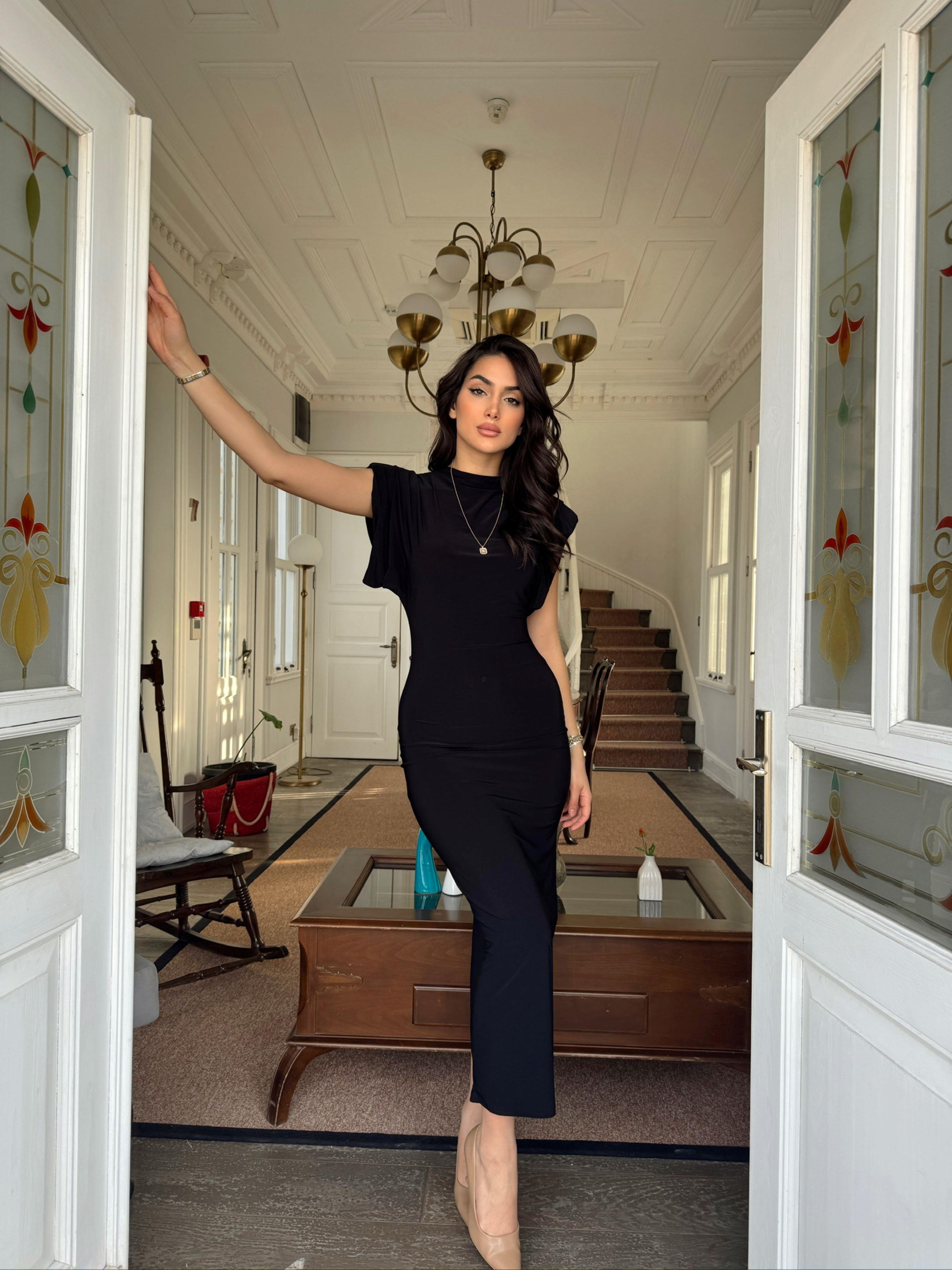 Peyker Salaş Kol Detay Vatkalı Elbise 12181 SİYAH
