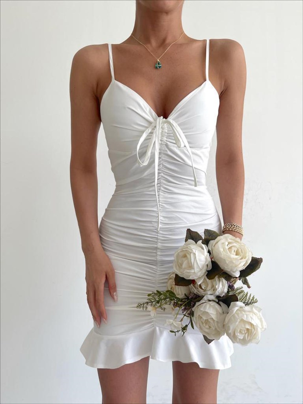 Popes İp Askı Drape Detay Mini Elbise BEYAZ