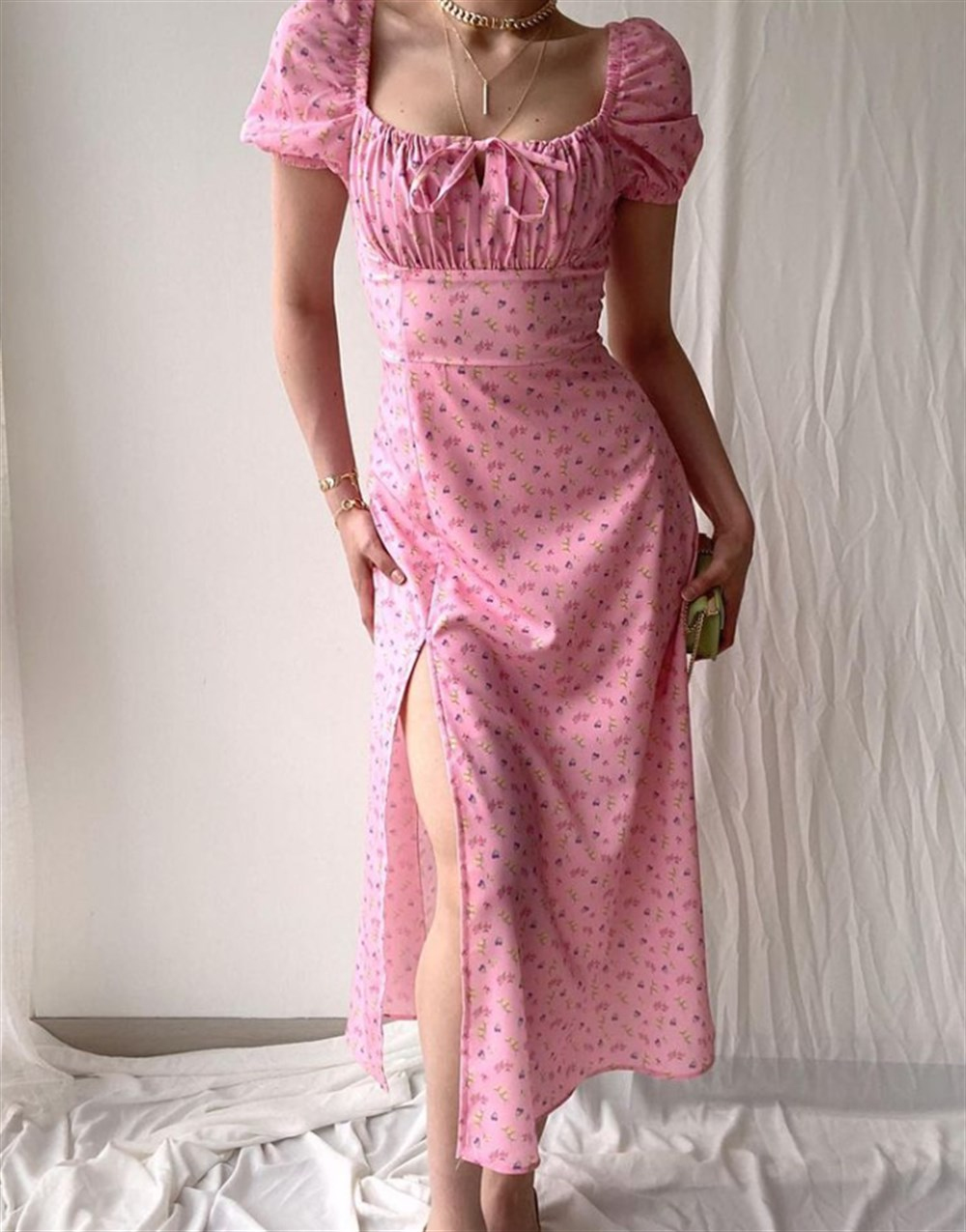 Puf Kol Elbise PEMBE