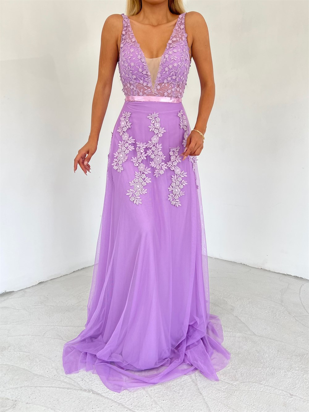 Şase Güpür Detay Tül Abiye