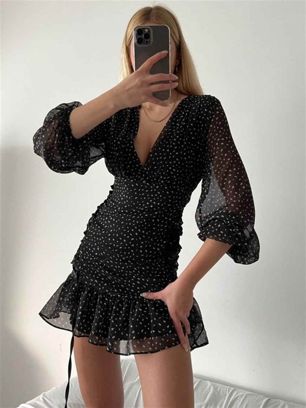 Şifon Bağlamalı Elbise SİYAH