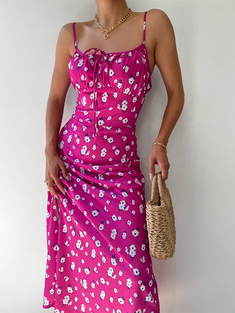Sima Askılı Yırtmaç Detay Elbise FUŞYA