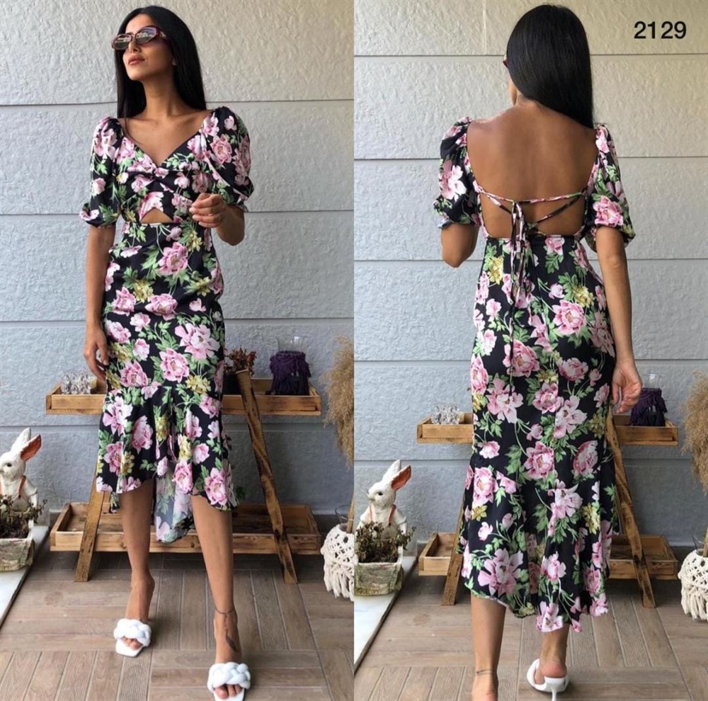 Sırt Bağlamalı Saten Elbise