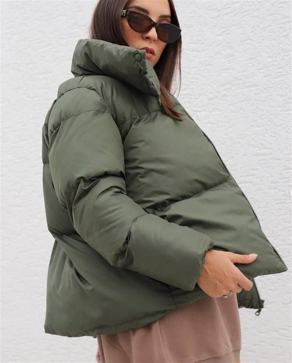 Sophia Çıtçıtlı Uzun Şişme Mont HAKİ YEŞİLİ
