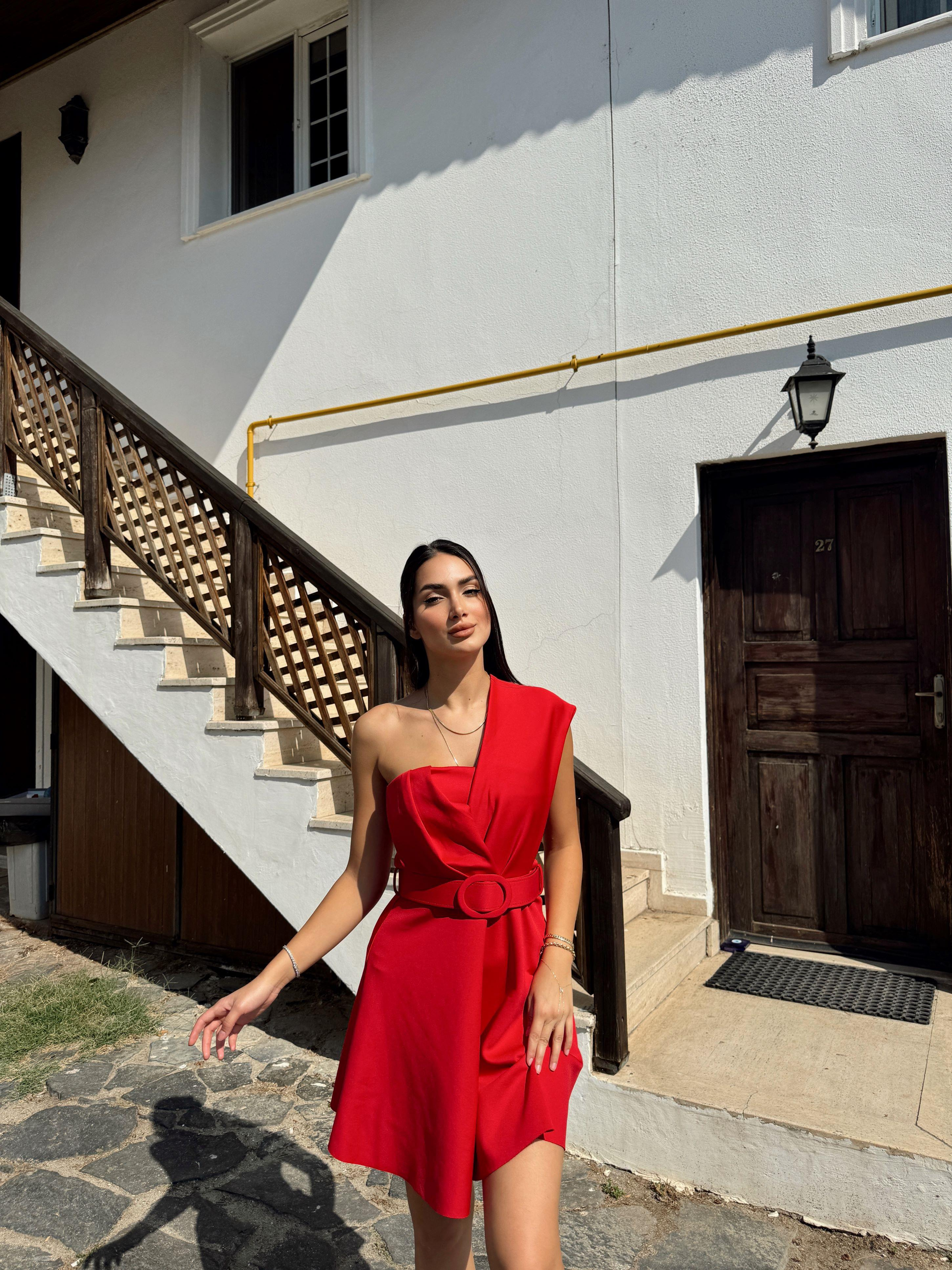 Sugar Tek Omuz Kemerli Mini Elbise 582093 KIRMIZI