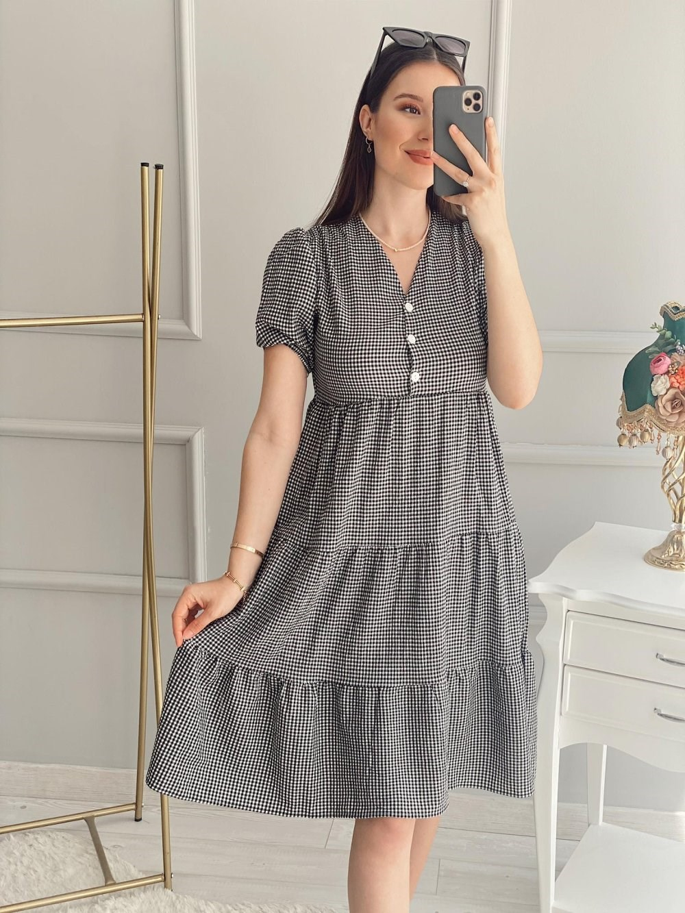 Üç Katlı Pötikare Gofre Elbise 2726 SİYAH