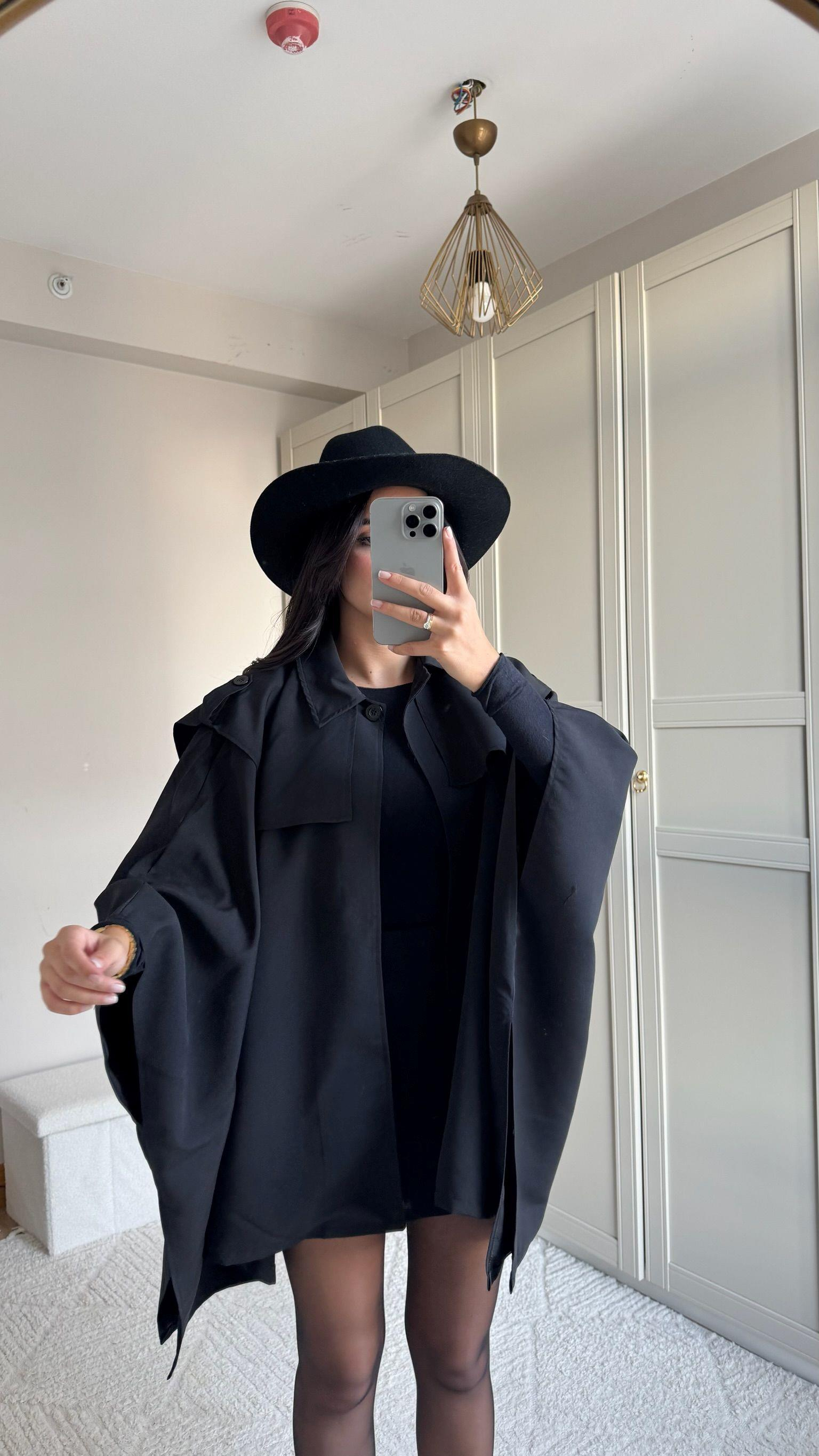 Veronica Düğmeli Panço Trençkot 2634 SİYAH