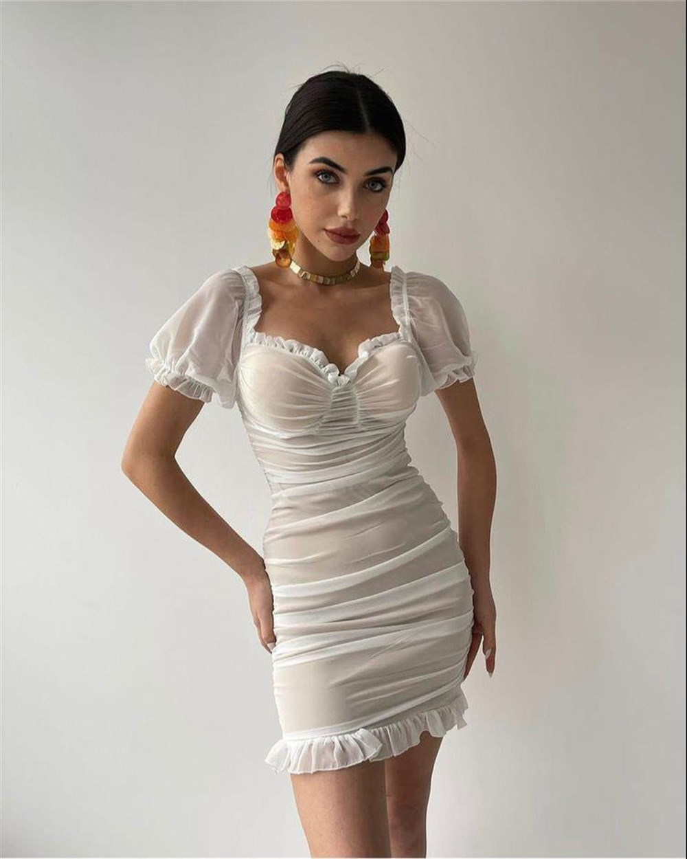 Yaka Fırfırlı Şifon Madonna Elbise 4124