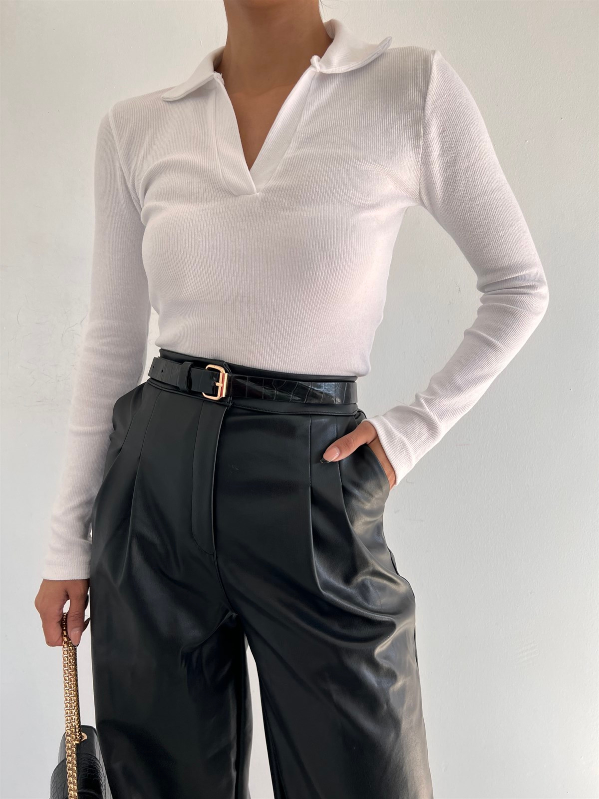 Yakalı Kaşkorse Bluz 1808 BEYAZ