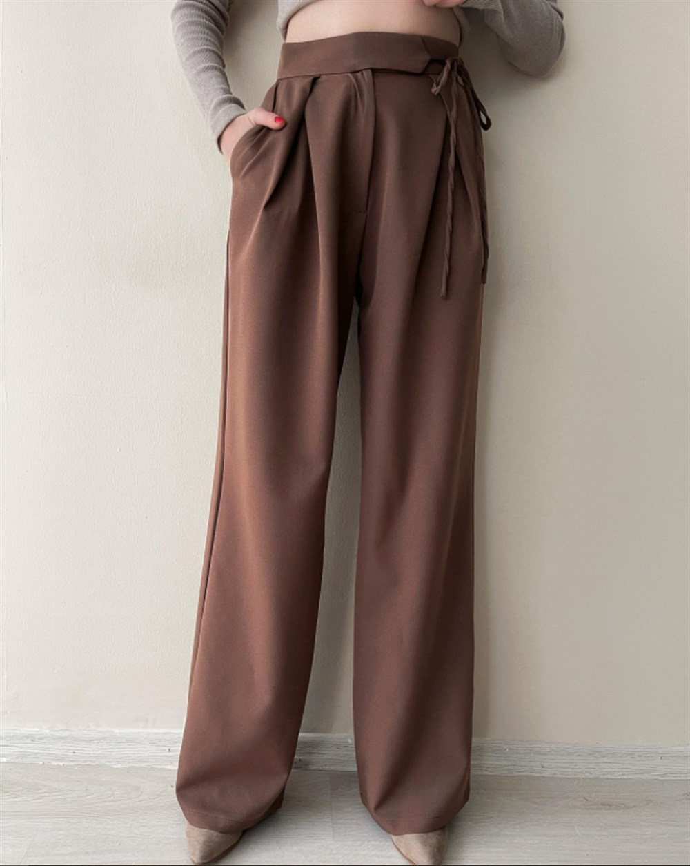 Yan Bağlamalı Palazzo Pantolon KAHVERENGİ