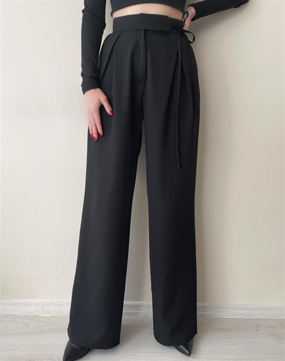 Yan Bağlamalı Palazzo Pantolon SİYAH