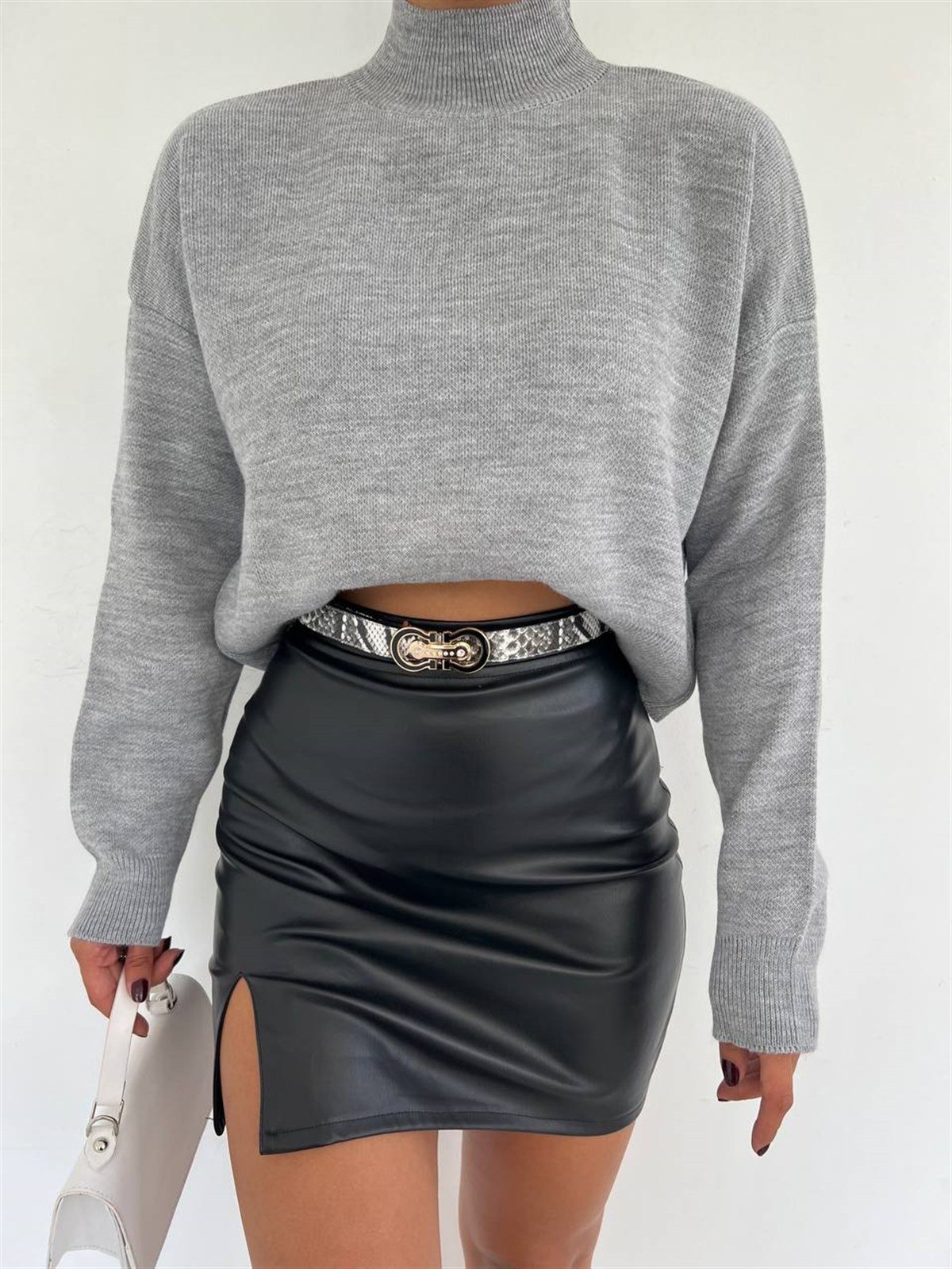 Yarım Balıkçı Düz Oversize Kazak 2866 GRİ