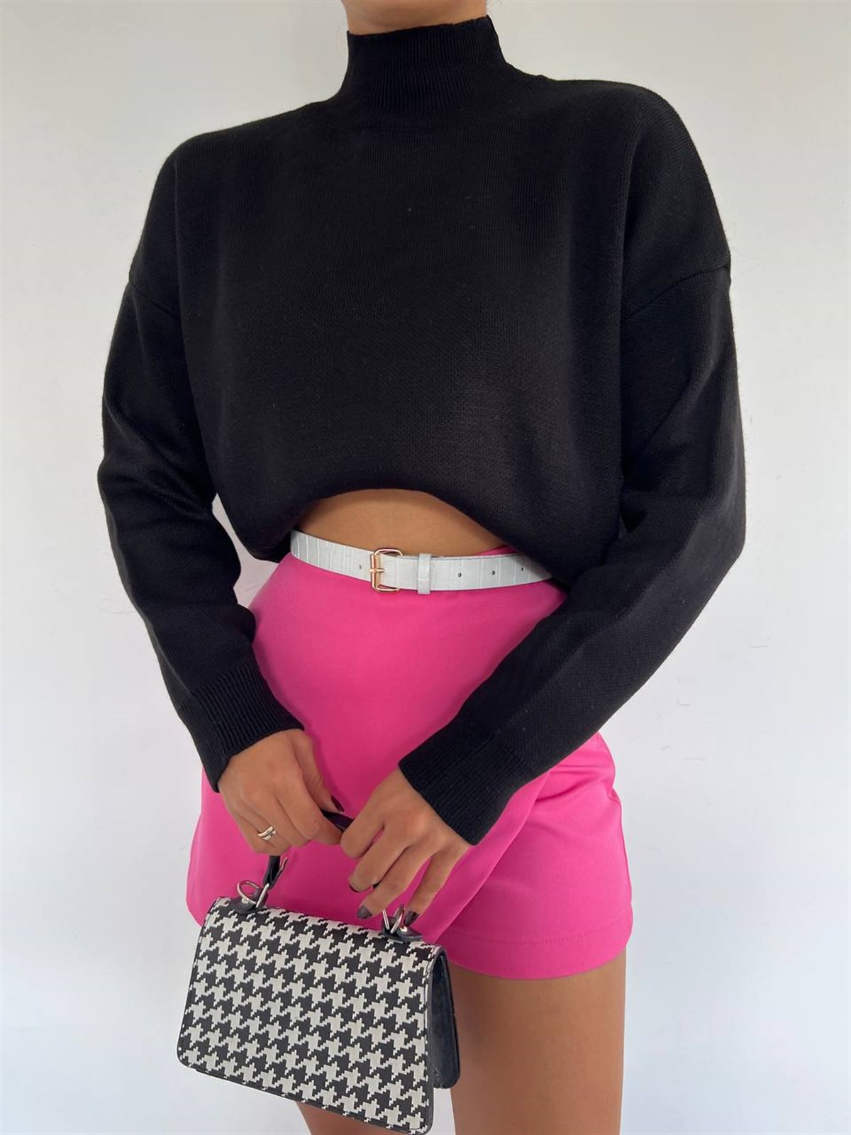 Yarım Balıkçı Düz Oversize Kazak 2866 SİYAH
