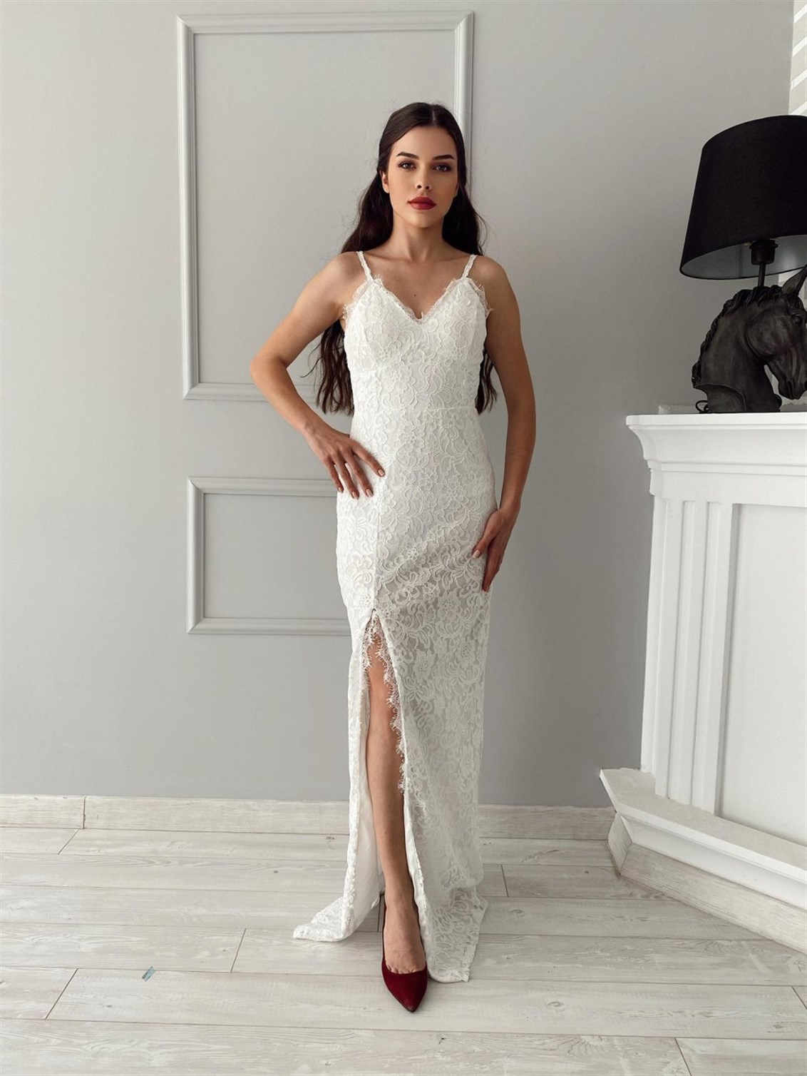 Yeni Sezon Güpür Yırtmaçlı Abiye BEYAZ