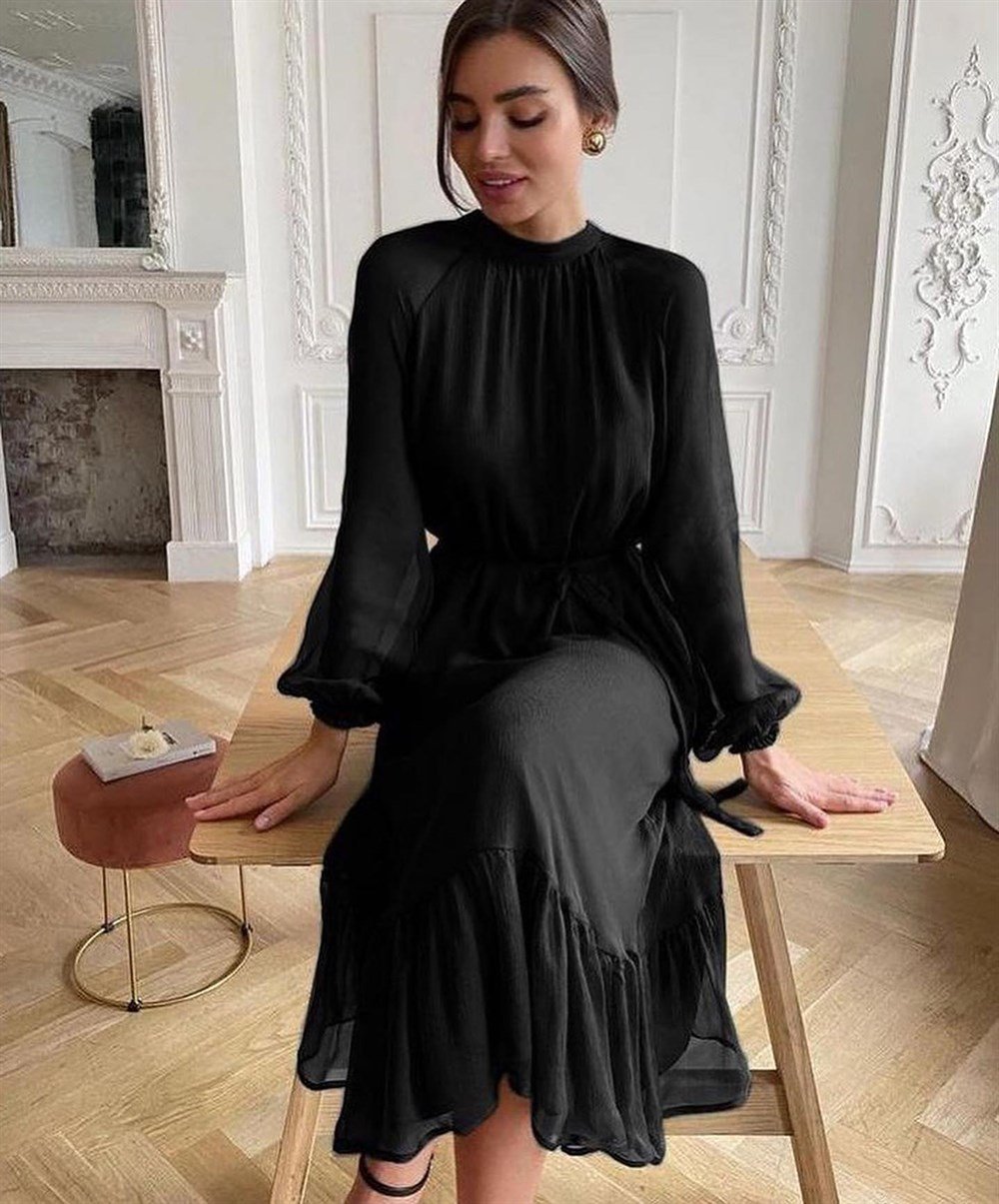 Yeni Sezon Kuşaklı Elbise SİYAH
