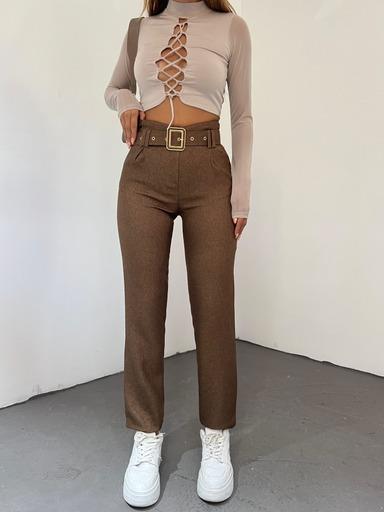 Yün Efekt Kemerli Pantolon 23439 ACI KAHVE