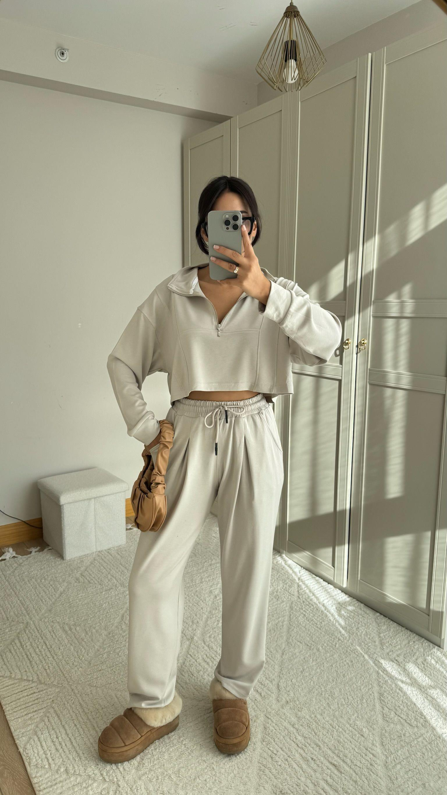 Zeta Fermuar Detay Rahat Kesim Takım 2617 BEJ